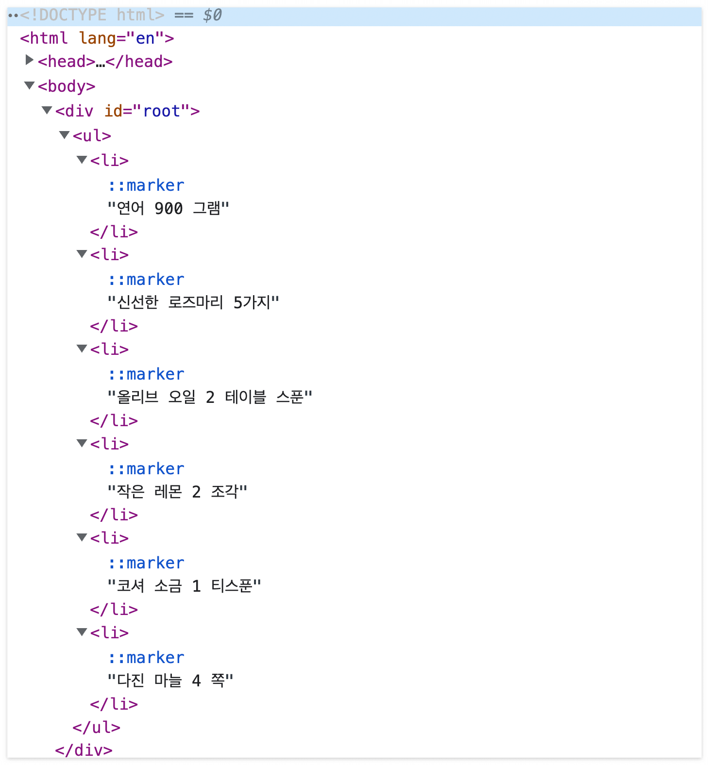 React.createElement("li", null, "코셔 소금 1 티스푼"),